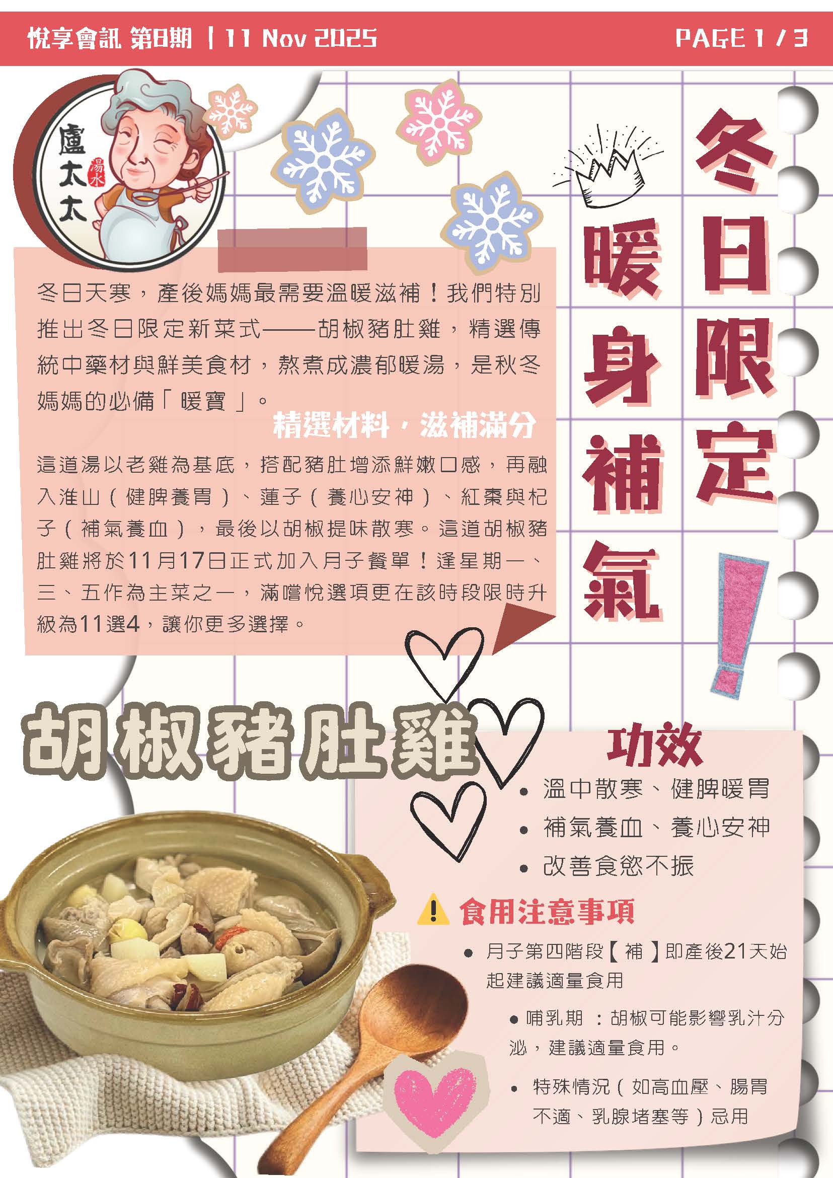 卢太太推出❕冬日限定❕新菜式纳入月子餐菜单: