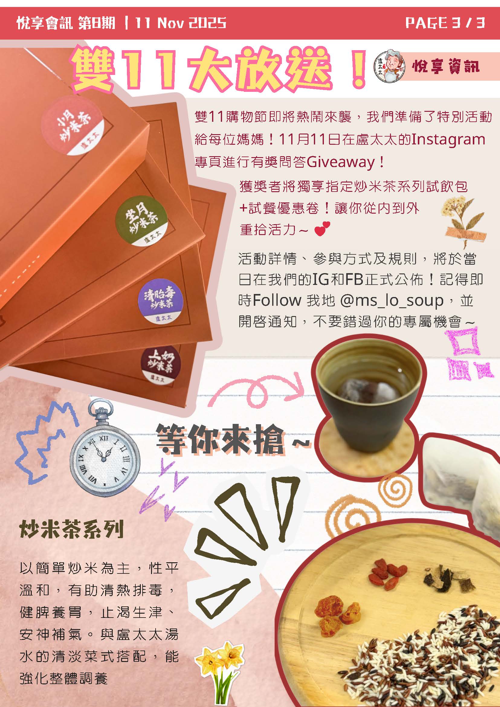 2025年11月刊: 冬季限定暖身补气菜式x 双11炒米茶Giveaway!!